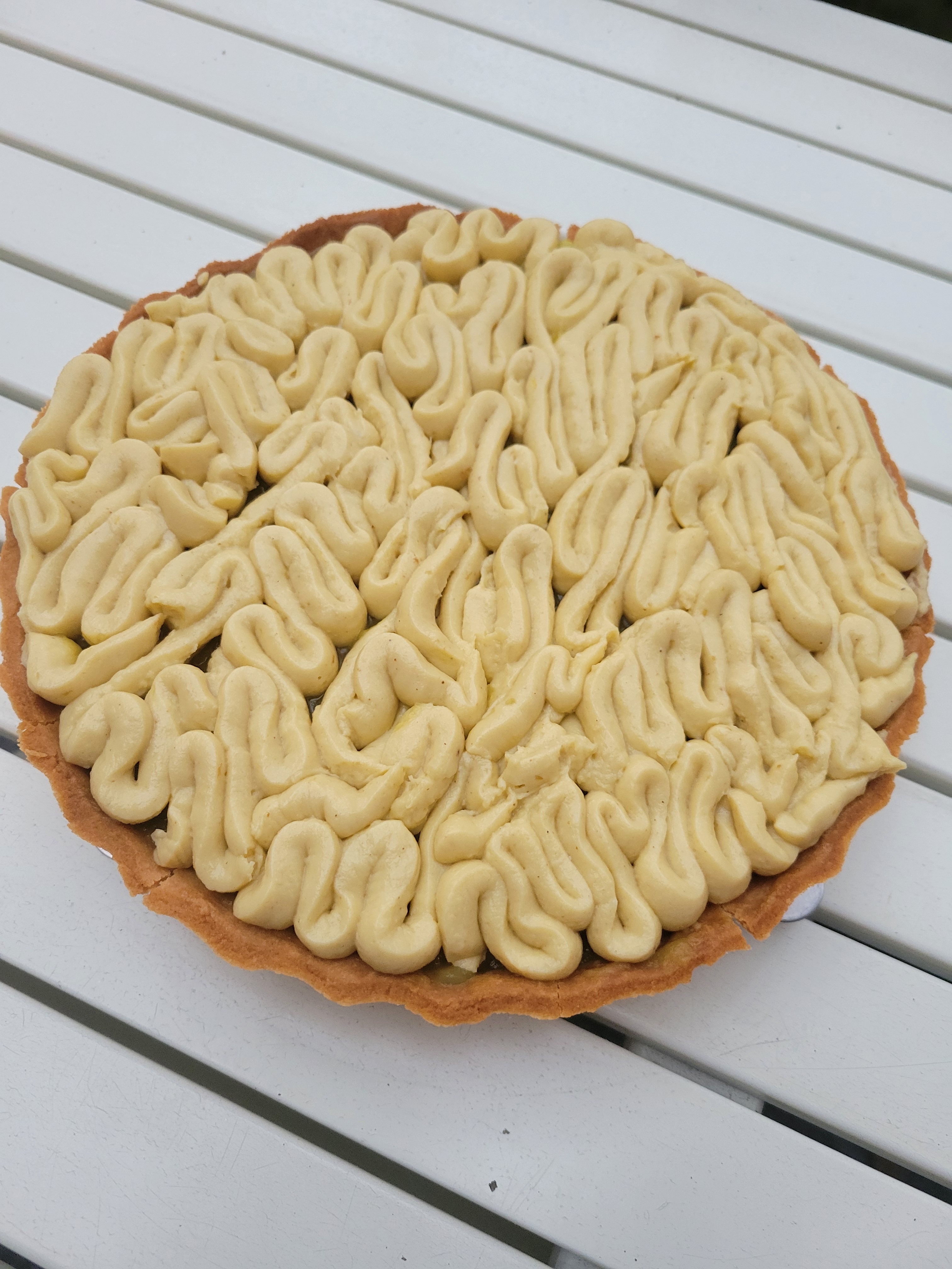 Venons-en à la base : la pâte sablée. En effet, c’est elle qui fait la différence entre une tarte correcte et une tarte inoubliable. Celle-ci, sans gluten, n’a donc rien à envier à une version classique. Elle est croustillante, ferme et légèrement friable, comme on l’aime.